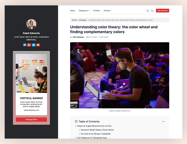 Anda bisa menampilkan spanduk atau skrip iklan di beberapa tempat, Header & Footer, Sidebar, Single Post.